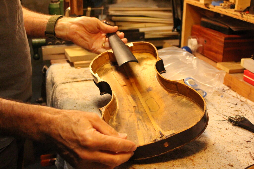 She is enthralled by the work, learning each of the delicate technical jobs needed for each fiddle. She is passionate about building the old time community throughout the state.
